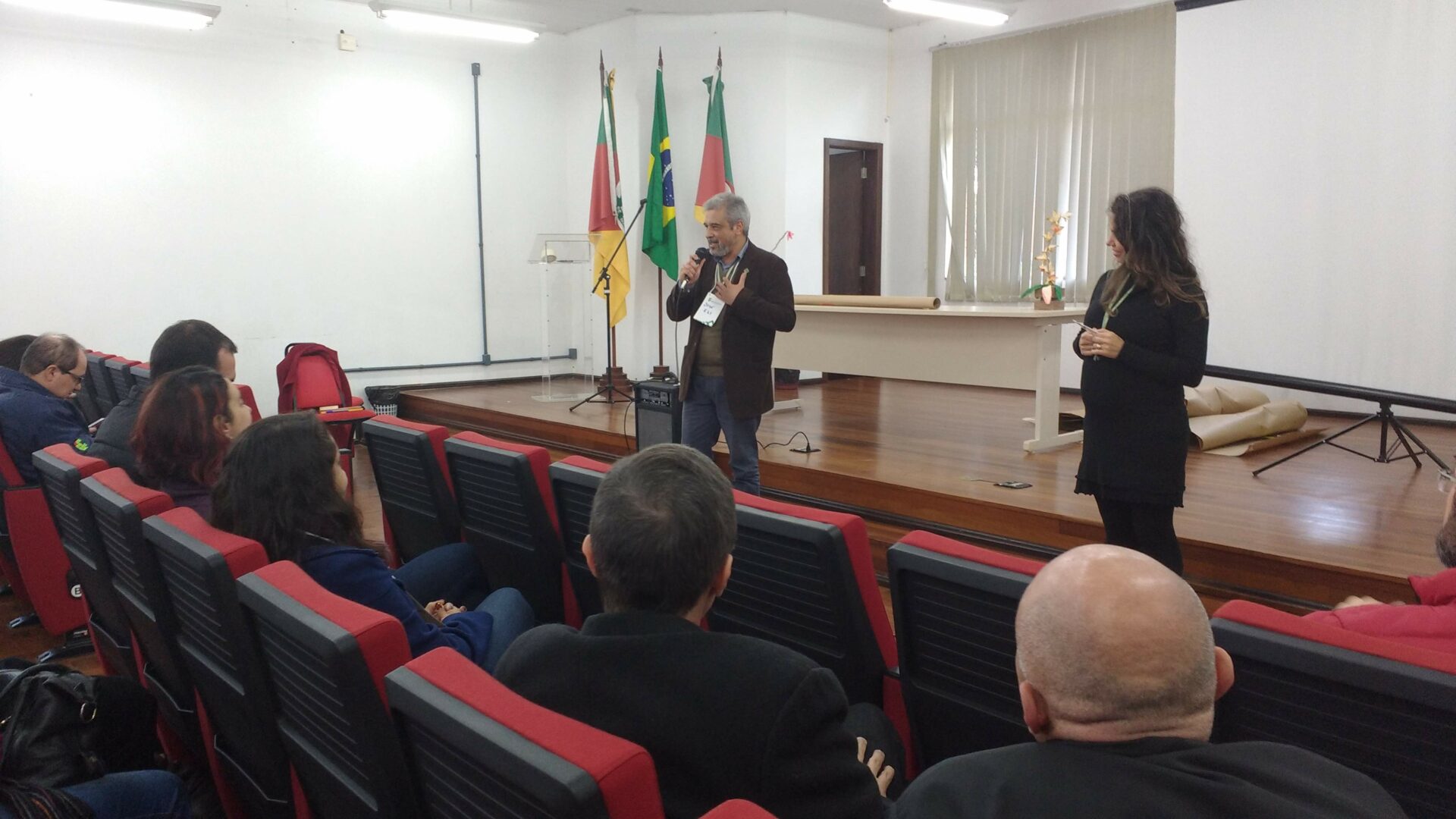 Palestrantes: Andrei Zwetsch Cavalheiro, pró-reitor de Desenvolvimento Institucional do IFSC; e Nídia Heringer, pró-reitora de Desenvolvimento Institucional do IFFAR