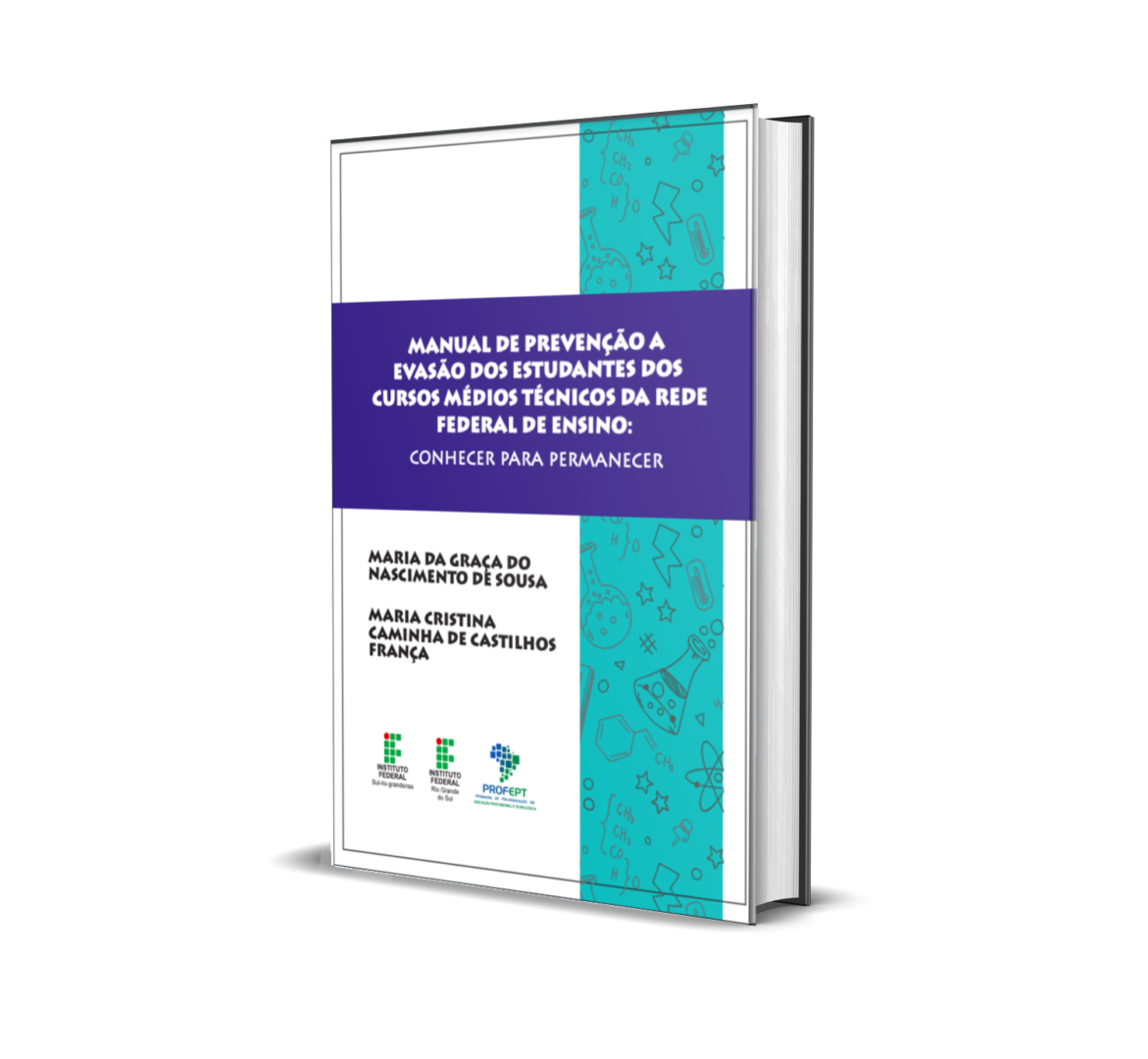 ![Esse produto consiste na elaboração de um manual denominado “Manual de Prevenção à Evasão dos Estudantes dos Cursos Médio Técnico da Rede Federal de Ensino: CONHECER PARA PERMANECER”, como parte integrante do Plano Estratégico Institucional de Permanência e Êxito dos Estudantes do Instituto Federal de Educação, Ciência e Tecnologia Sul-rio-grandense (IFSul), a ser adotado por todas as unidades da instituição, em busca da redução dos índices de evasão que atingem a Rede Federal de Educação, Ciência e Tecnologia. O manual tem como objetivo apresentar uma alternativa de combate à evasão escolar a toda a comunidade acadêmica do Instituto Federal e à sua equipe pedagógica, geralmente composta por pedagogos, assistentes sociais, psicólogos, técnicos em assuntos educacionais, assistentes de alunos, professores, entre outros. Ademais, esta obra também se destina aos estudantes dos cursos técnicos da Rede Federal de Educação. O manual de prevenção à evasão dos estudantes dos cursos médio técnico da Rede Federal de Educação tem, em seu corpo, informações sobre o Instituto Federal de Educação, Ciência e Tecnologia Sul-rio-grandense (IFSul) – Campus Santana do Livramento, dados concernentes à equipe pedagógica que presta apoio diretamente aos estudantes, bem como orientações acerca dos direitos e deveres dos discentes, espaços de participação, dentre outros.]() Manual de Prevenção à Evasão dos Estudantes dos Cursos Médio Técnico da Rede Federal de Ensino