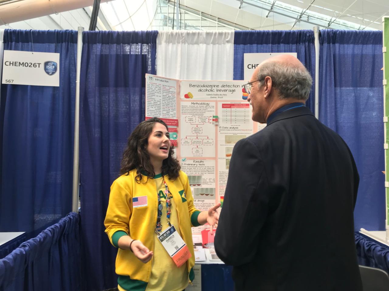 As estudantes viajaram com a professora orientadora, Flavia Twardowski, e com o professor co-orientador de Isabela, Claudius Jardel Soares. Flávia comemora o desempenho dos projetos e das alunas: “Elas chamaram tanta atenção que a Isabela concedeu entrevista a uma jornalista da Science news (https://www.sciencenewsforstudents.org/blog/eureka-lab/drug-detection-system-could-help-partygoers-protect-themselves) e a Juliana para a ex-secretária do Departamento do Interior dos EUA, Sarah Margaret Jewell. Ambas conversaram com a presidente da Intel Foundation, Rosalind Hudnell, e a Isabela apresentou seu trabalho para o prêmio Nobel de Química de 2008, Martin Chalfie”.