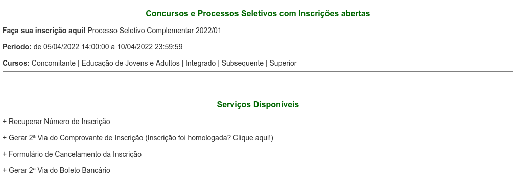 📌 Confira as os campi e os cursos do Processo Seletivo Complementar 2022/1