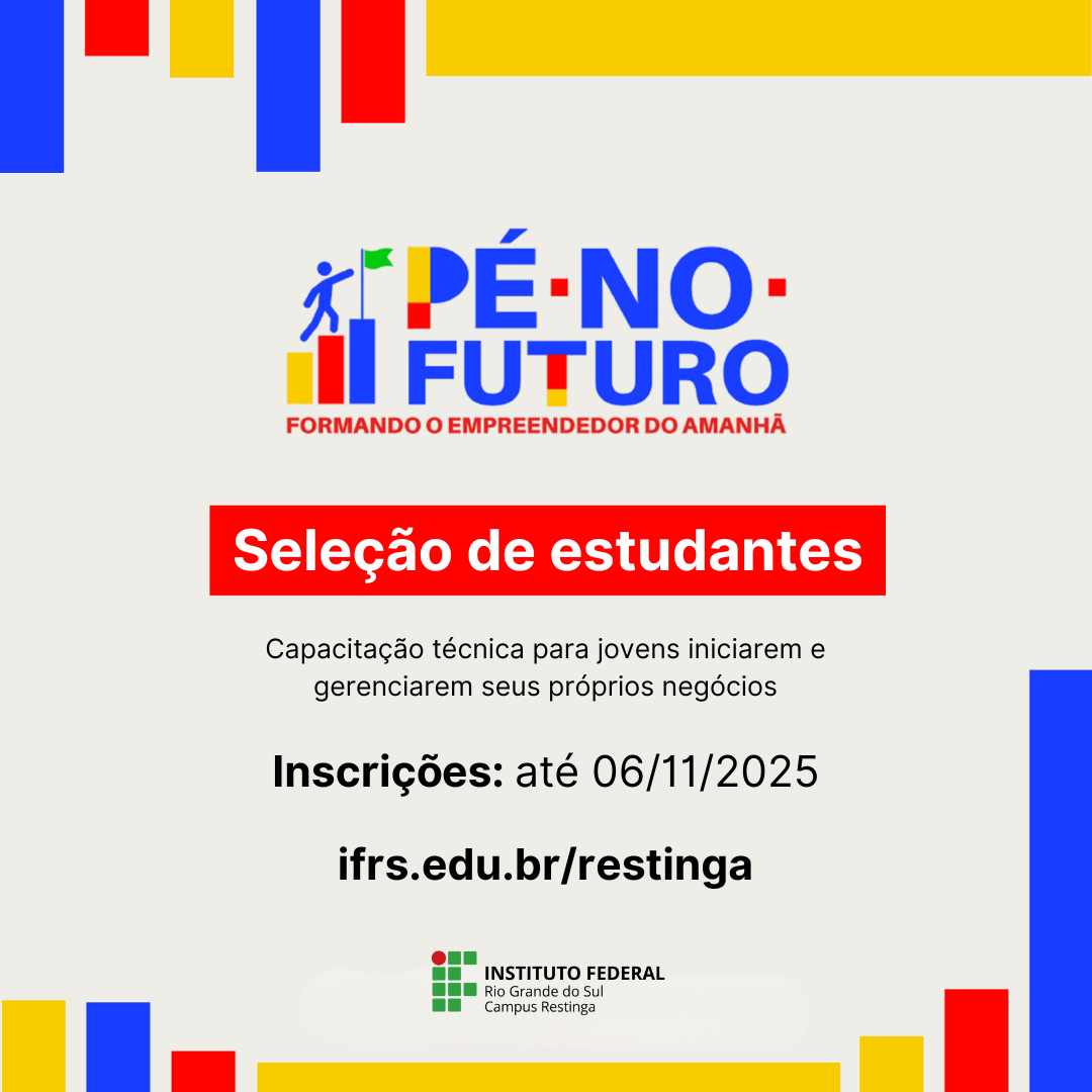 Com o objetivo de oferecer formação técnica e aprimorar habilidades em empreendedorismo para jovens de até 24 anos que já concluíram o ensino médio e não tenham ingressado no ensino superior de graduação, o Instituto Federal de Educação, Ciência e Tecnologia do Rio Grande do Sul (IFRS) está com inscrições abertas para o Programa Pé no Futuro. O Programa busca…