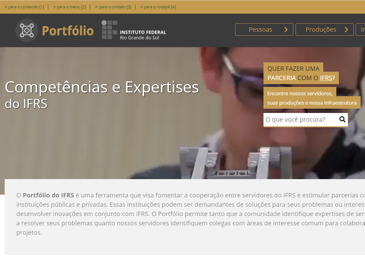 O Portfólio IFRS dá visibilidade a boas iniciativas e permite que potenciais parceiros conheçam expertises dos servidores e a estrutura da instituição, favorecendo uma aproximação para o desenvolvimento de projetos cooperados. As parcerias são facilitadas ainda pelo Escritório de Projetos do IFRS, que também articula com fundações de apoio melhorias no fomento e na gestão dos projetos.