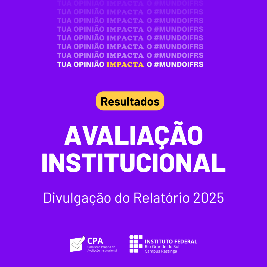 Também se encontra publicado o Relatório de Autoavaliação do Campus Restinga, produzido pela CPA Local do campus. Acesse https://ifrs.edu.br/restinga/