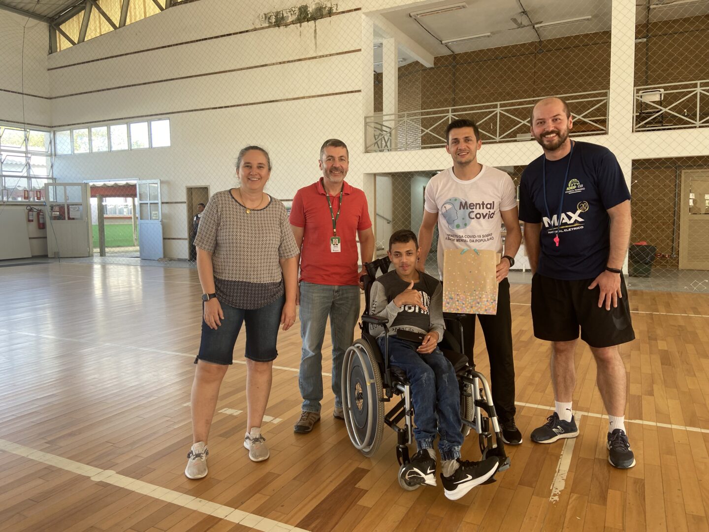 A entrega foi feita pelo pesquisador Eduardo Gauze, estavam presentes o diretor de Pesquisa Cleiton Pons, os professores de Educação Física, Elisabete Acosta e José Antonio Bicca, a monitora Uiara Rodrigues e estudantes do terceiro ano.