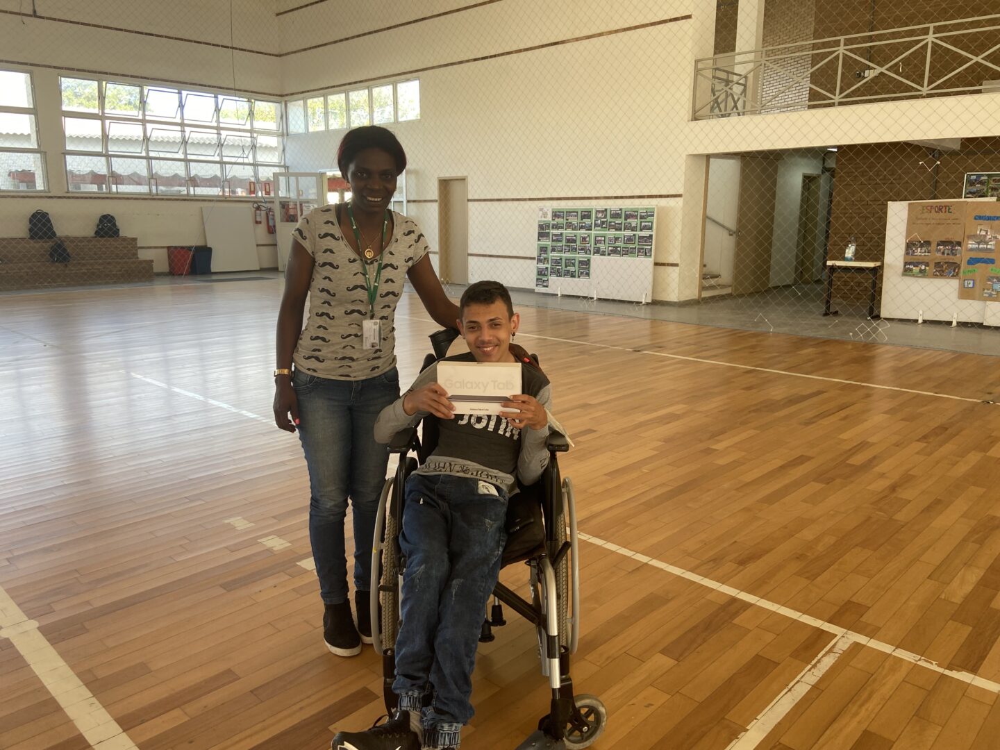 Ao finalizar a coleta foi sorteado um tablet entre os participantes do estudo, a estudante sorteada foi Gabriele Andrade Fernandes (2º ano de Refrigeração) que repassou ao estudante Kauã Marthe Fonseca Conceição (1º ano de Eletrotécnica).