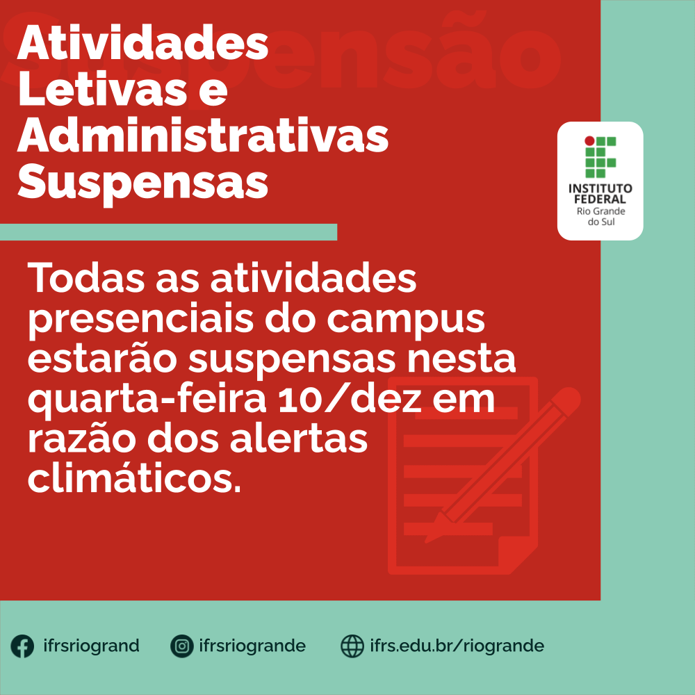 Atividades letivas e administrativas suspensas em 10/12/2025