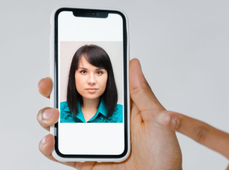 Importante: a foto deve ser no padrão das utilizadas em documentos de identificação oficiais com o rosto detacado e fundo claro, na orientação de retrato (celular na vertical), como a seguir:
