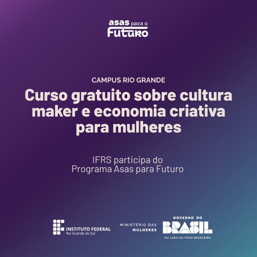 Estão abertas, até 20 de fevereiro de 2026, as inscrições para o curso gratuito “Fazedoras: Utilizando fabricação digital para a economia criativa”. A formação é ofertada pelo Campus Rio Grande do Instituto Federal de Educação, Ciência e Tecnologia do Rio Grande do Sul (IFRS), no âmbito do “Programa Asas para o Futuro”, iniciativa do Ministério das Mulheres em parceria com instituições da Rede Federal.