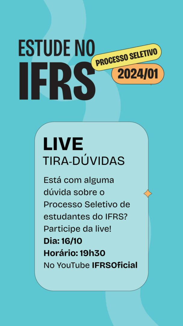 IFRS organiza live tira-dúvidas do Processo Seletivo de estudantes na próxima segunda-feira, dia 16 de outubro
