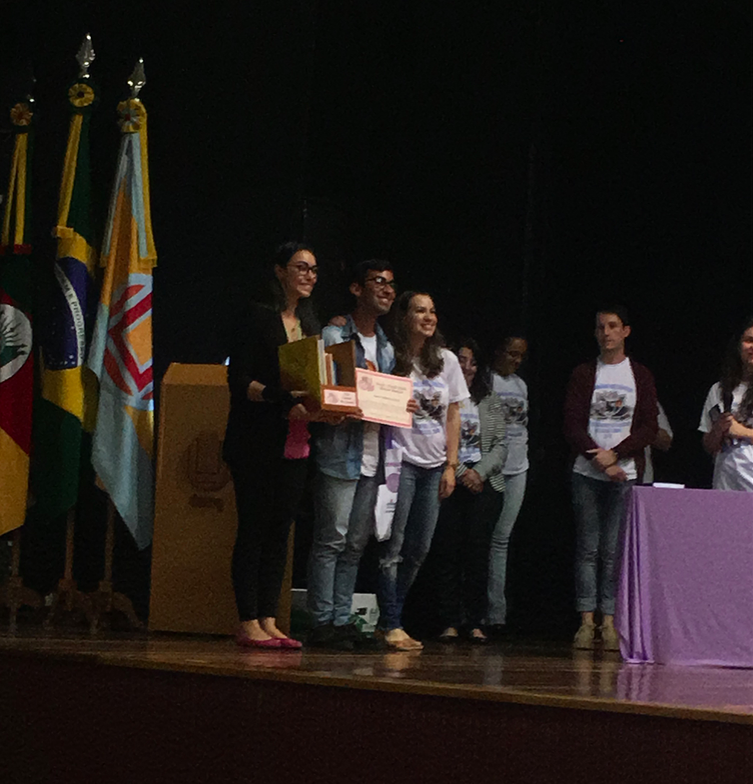 No dia 31 de outubro os alunos Brenda Farias Pacheco e Maurício Bilhalva de Freitas, ambos do terceiro ano do curso de Informática, receberam Menção Honrosa na categoria “poesia” na IV Mostra Cultural sobre Diversidade Sexual e de Gênero, orientados pela professora Lucía Silveira Alda. A premiação foi  realizada na FURG, com a presença da orientadora do trabalho.