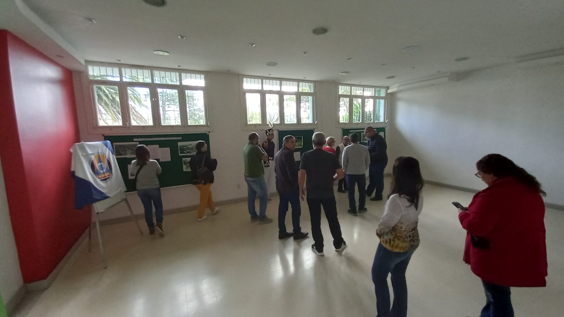 Depois de os recebermos no gabinete da Direção Geral, a visita se encaminhou para o espaço de exposições do NUMEM IFRS-RG, localizado ao lado da sala da Direção de Ensino, para visitação de nossa linha do tempo exposta em fotos e artefatos.