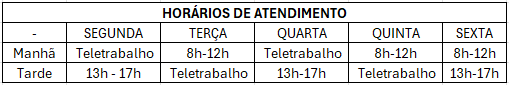 * Nos horários de teletrabalho o contato deve ser feita preferencialmente pelo e-mail ou whatsapp da coordenadoria.