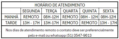 * Nos horários de teletrabalho o contato deve ser feita preferencialmente pelo e-mail ou whatsapp da coordenadoria.