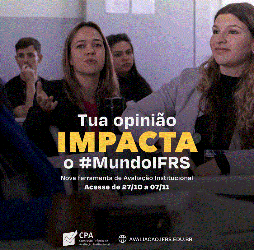 O prazo para responder vai até o dia 07 de novembro. Para participar, acesse: avaliacao.ifrs.edu.br.