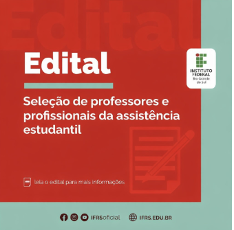 Estão abertas até 03 de fevereiro de 2026 as inscrições para a seleção de professores e profissionais de assistência estudantil para atuar no Programa Partiu IF do Instituto Federal de Educação, Ciência e Tecnologia do Rio Grande do Sul (IFRS). Podem participar da seleção servidores do Instituto ou de outras esferas da administração pública.