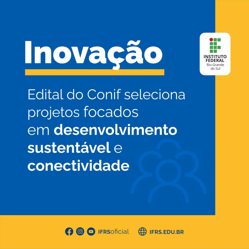 Servidores e estudantes do Instituto Federal de Educação, Ciência e Tecnologia do Rio Grande do Sul (IFRS) podem participar da seleção de protótipos de soluções e inovações voltadas ao desenvolvimento sustentável com uso de tecnologias de conectividade. A iniciativa é do Conselho Nacional das Instituições da Rede Federal de Educação Profissional, Científica e Tecnológica (Conif), em parceria com a Confederação Nacional da Tecnologia da Informação e Comunicação (ConTIC) e com apoio operacional da Telebrasil. As inscrições vão até 20 de março de 2026 e os detalhes estão divulgados no Edital Conif/ConTIC nº 02/2026.