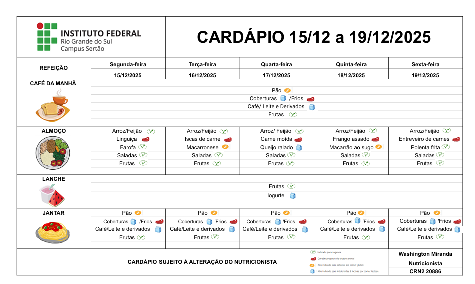 Cardápio Compartilhar conteúdo: Facebook Twitter LinkedIn Pinterest WhatsApp Última atualização em 12/12/2025