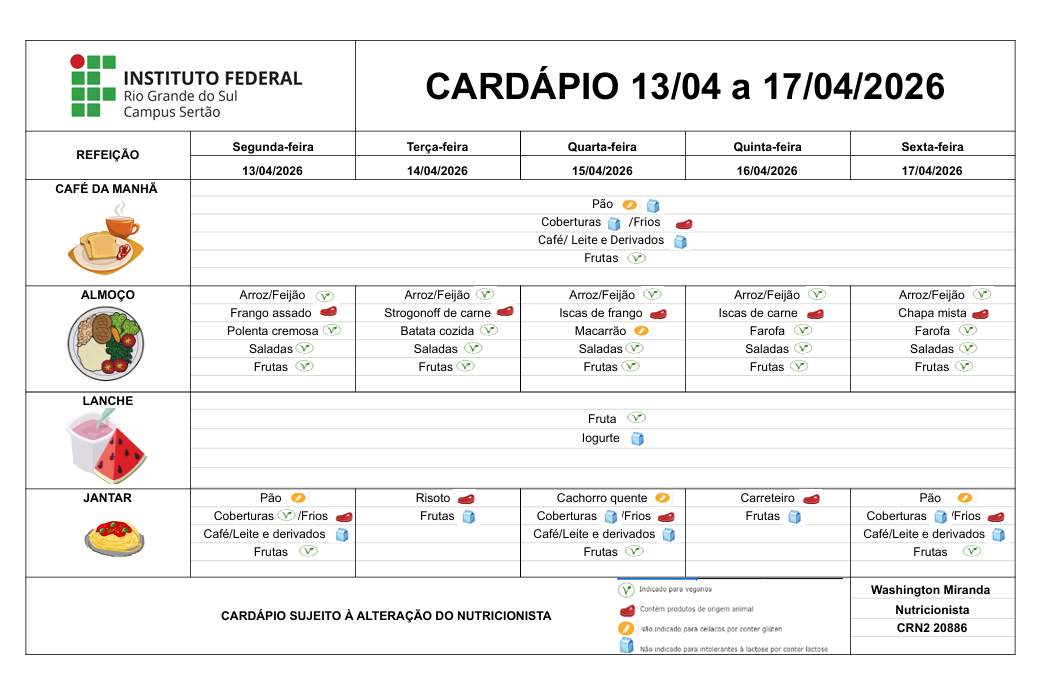 Cardápio Compartilhar conteúdo: Facebook Twitter LinkedIn Pinterest WhatsApp Última atualização em 10/04/2026