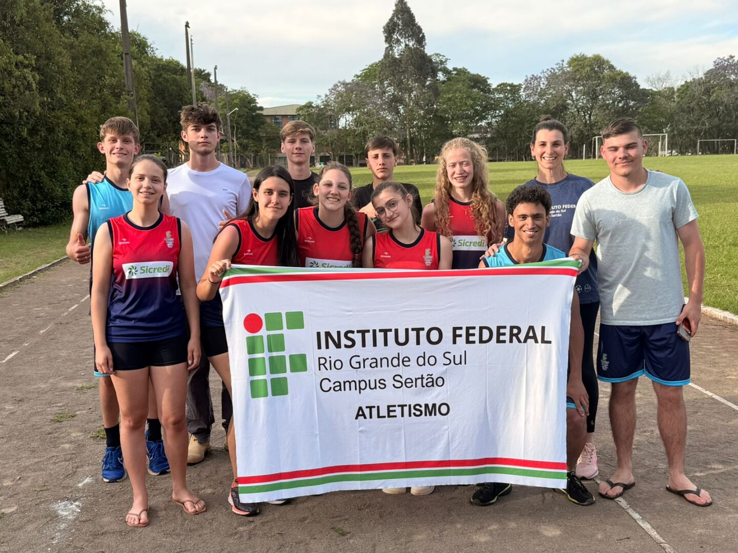 Os estudantes dos cursos técnicos integrados ao ensino médio do Campus Sertão tiveram um desempenho de destaque na etapa da 7ª Coordenadoria de Educação de Passo Fundo dos Jogos Escolares do Rio Grande do Sul (JERGS), modalidade Atletismo, realizada na tarde de 11 de novembro, na Universidade de Passo Fundo (UPF). A equipe conquistou 11 medalhas, sendo 6 de ouro, 2 de prata e 3 de bronze, em diferentes provas, representando com excelência a instituição na competição.