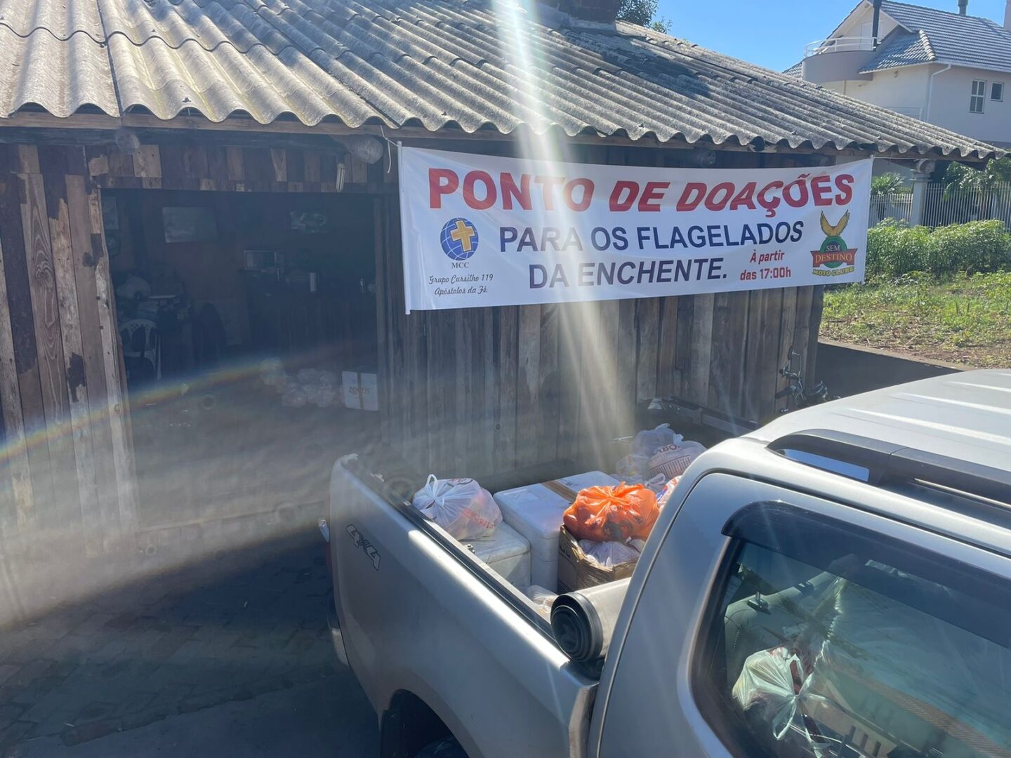 Na manhã de terça-feira (07/05), o Diretor de Desenvolvimento Institucional Affonso Manoel Righ Lang realizou a entrega de alimentos ao Motoclube Sem Destino do município de Marau, por indicação da Defesa Civil. O grupo levará os mantimentos até o município de Encantado.