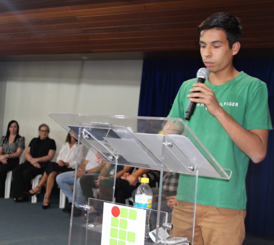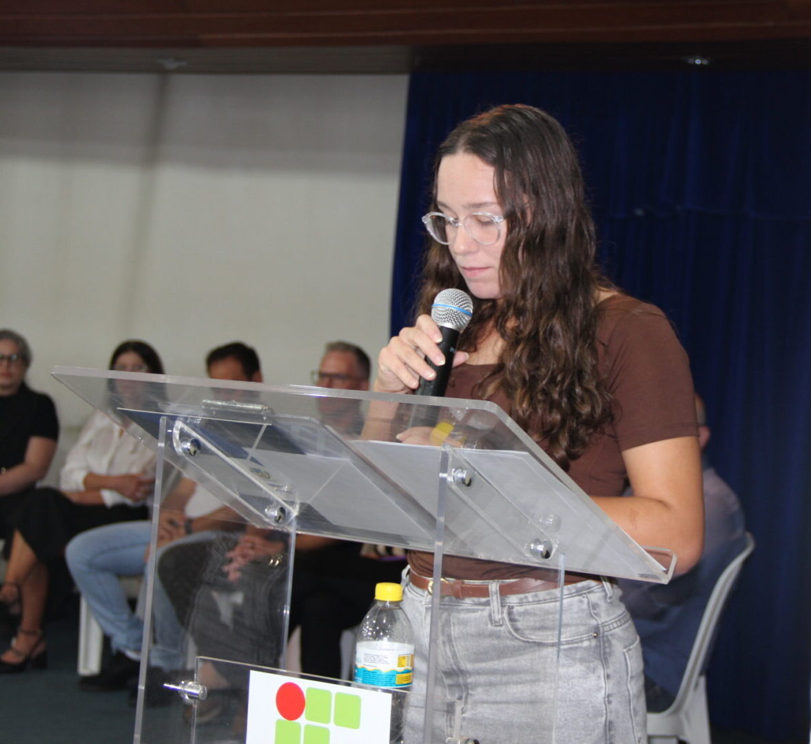 Um dos momentos de destaque da noite foi a participação de estudantes que participaram da primeira turma do programa na Instituição, compartilhando suas experiências com os novos participantes. Ex-alunos de escolas da região e atualmente estudantes do Campus Sertão relataram suas vivências e incentivaram os ingressantes a aproveitarem as oportunidades oferecidas pelo programa. Fizeram uso da palavra Brenda Naiane Mertz Ferreira, ex-aluna da Escola Municipal de Ensino Fundamental Pantaleão Thomaz (Coxilha); Júlia Walentina Serro Bolzani, ex-aluna da Escola Municipal Cívico-Militar de Ensino Fundamental Antônio De Col (Sertão); Elias Pereira Dias, ex-aluno da Escola Estadual de Ensino Fundamental Engenheiro Luiz Englert (Sertão); e Márcio Gabriel Klein, ex-aluno da Escola Estadual de Ensino Fundamental Bandeirantes (Sertão).