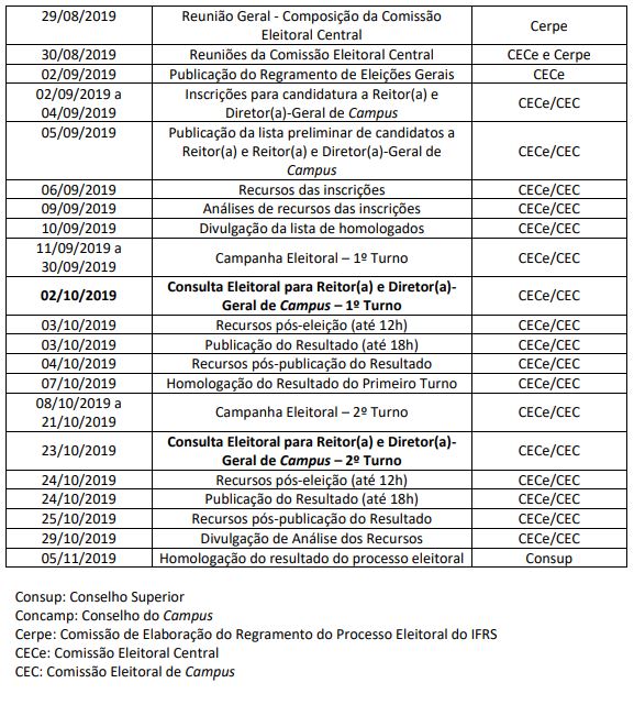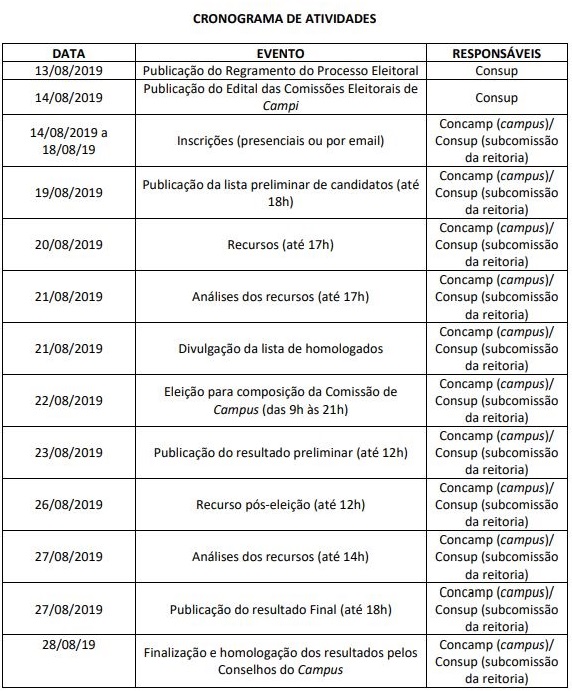 Cronograma (Resolução Nº 074, de 12 de agosto de 2019) Compartilhar conteúdo: Facebook Twitter LinkedIn Pinterest WhatsApp Última atualização em 14/08/2019