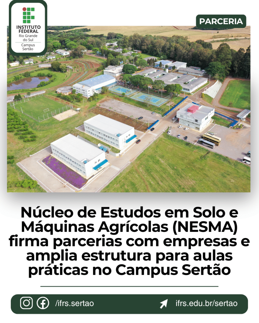 O Núcleo de Estudos em Solo e Máquinas Agrícolas (NESMA) do Campus Sertão, coordenado pelo professor David Peres da Rosa, firmou, nos meses de novembro e dezembro, importantes parcerias com empresas do setor agrícola. As articulações resultaram em novos equipamentos, melhorias na infraestrutura e apoio técnico para as atividades de ensino, pesquisa e extensão do campus. As parcerias foram articuladas com três empresas: Kuhn do Brasil, J.Assy e Inel Agricultura.