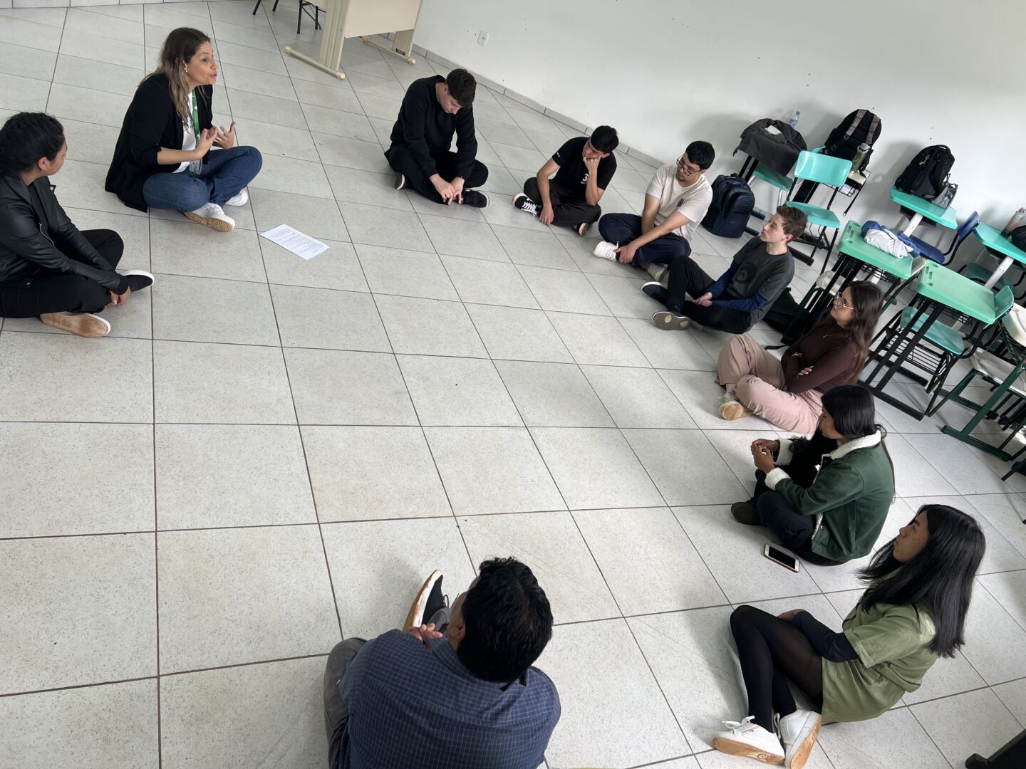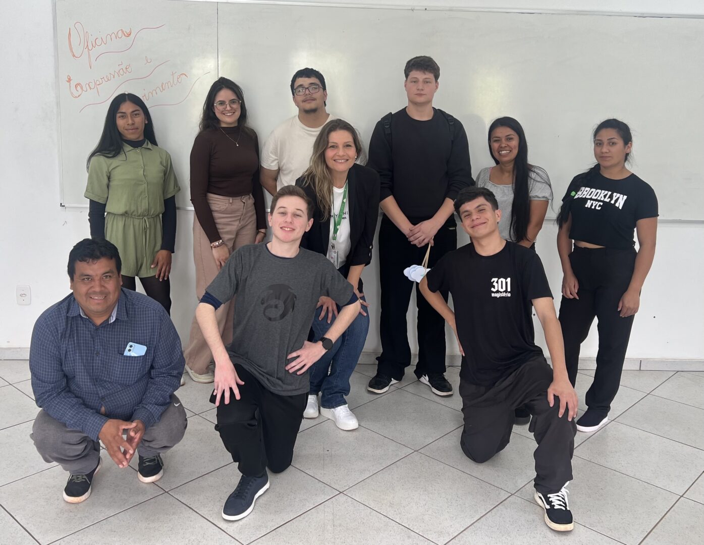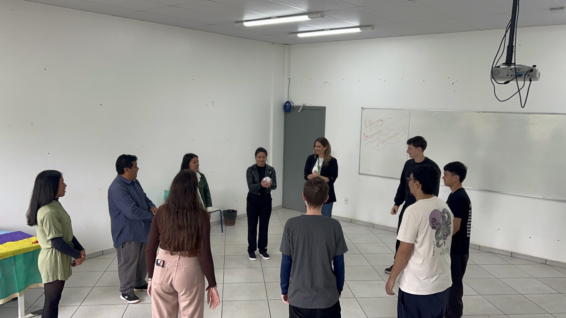 No dia 28 de outubro, a turma do terceiro semestre do curso de Licenciatura em Ciências Biológicas teve uma manhã de formação diferente. Os estudantes puderam explorar através da “Oficina de Expressão e Movimento”, ministrada pela pedagoga Samile Drews, intermediada pela professora de Didática Alexandra Ferronato Beatrici, diversas formas de expressão, com os objetivos de desenvolver a criatividade e as habilidades de comunicação em público. Ao desenvolver habilidades práticas, a oficina buscou preparar os estudantes para os desafios de maneira mais confiante e criativa. De acordo com a professora Alexandra, a combinação de aprendizado ativo, expressão pessoal e colaboração pode transformar a experiência de ensino e aprendizado. Ela destaca, ainda, que atividades como a oficina oferecem diversos benefícios, especialmente quando proporcionados para futuros professores. “Contribuem para seu desenvolvimento profissional, ajudando a se tornarem mais empáticos, entendendo melhor as emoções, o que é crucial para um ambiente de aprendizado positivo”, evidencia.