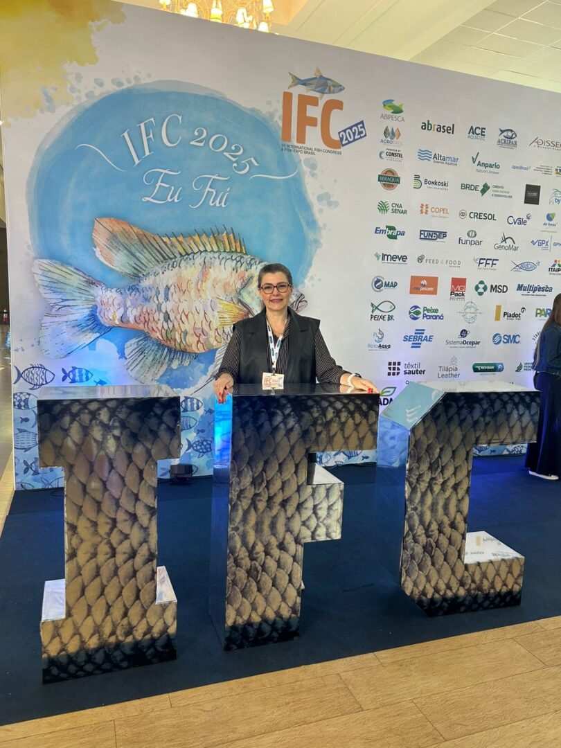 A professora Rosângela Poletto, docente do Campus Sertão, participou como palestrante no IFC 2025 – International Fish Congress & Fish Expo Brasil, realizado em Foz do Iguaçu, de 02 a 04 de setembro. O evento foi marcado pela apresentação oficial da norma de bem-estar animal para tilápias desenvolvida pela Certified Humane®, representando um avanço significativo para a aquicultura no Brasil e na América Latina.