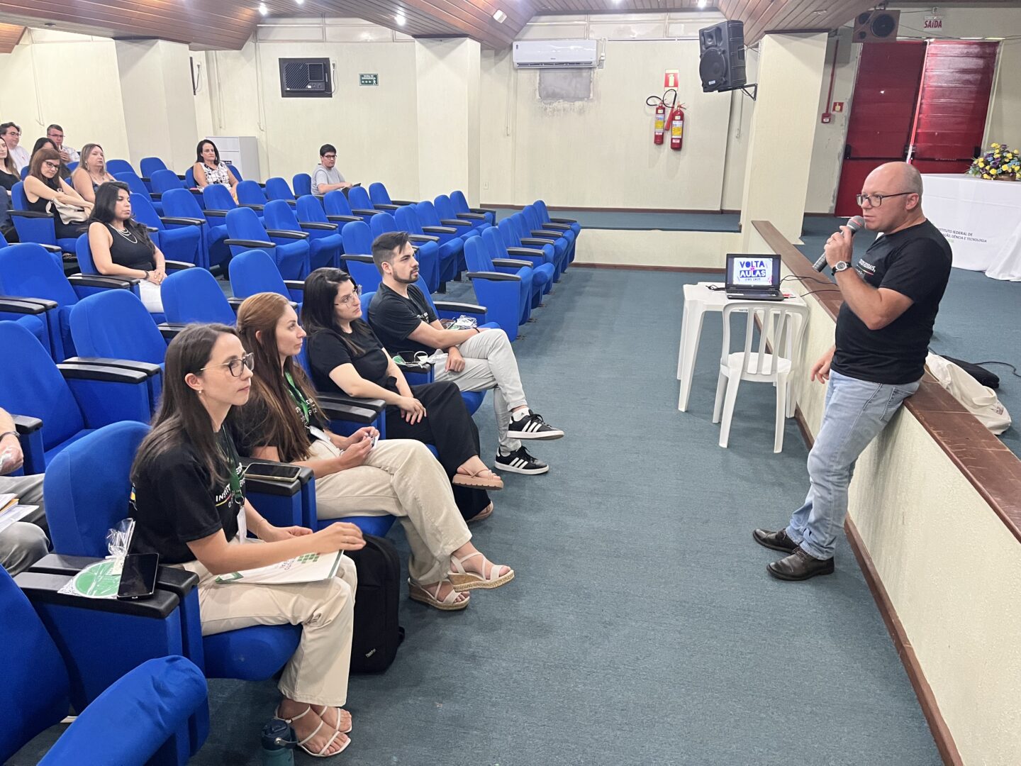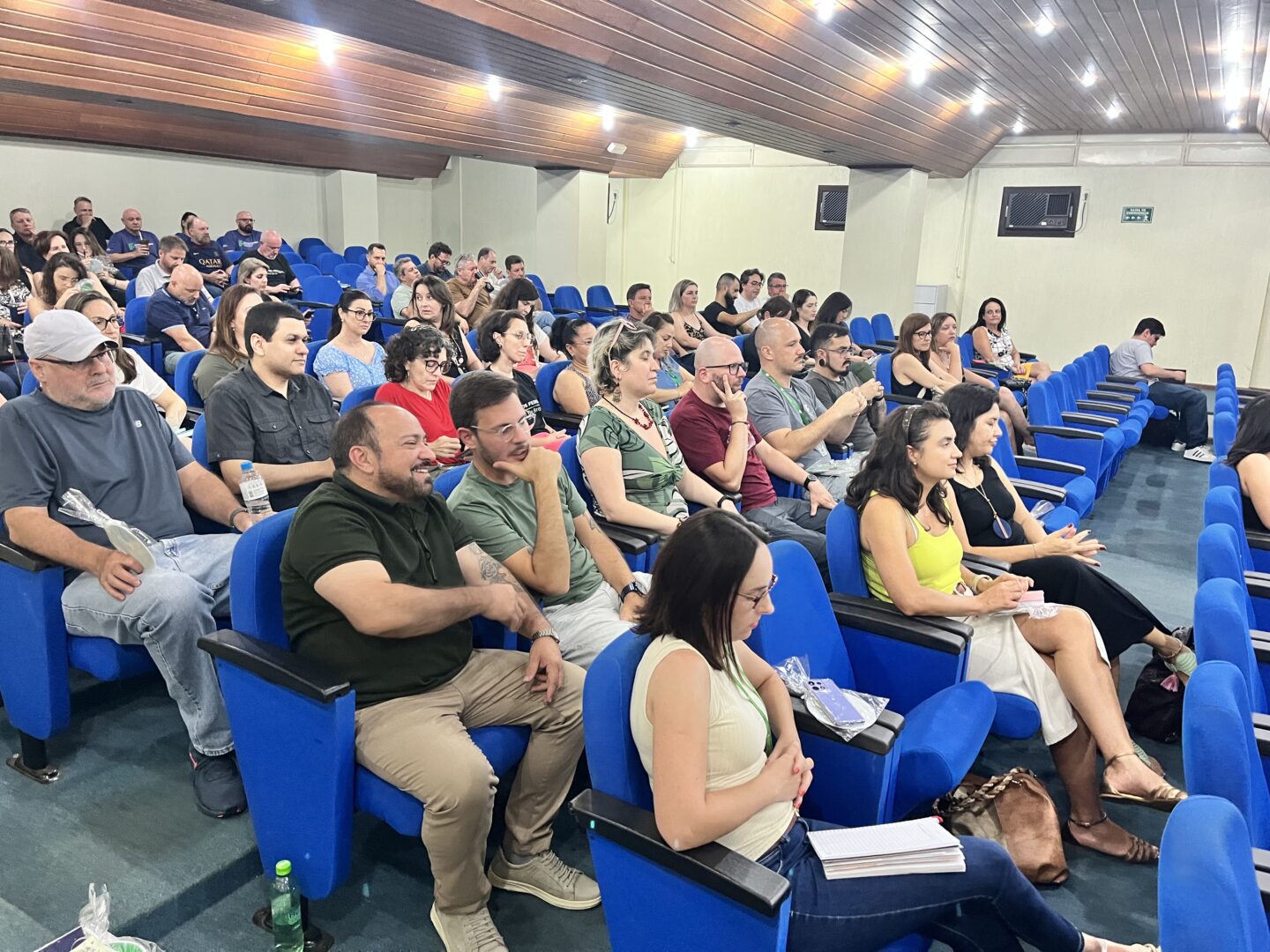 Após a acolhida o Diretor-Geral, professor Clever Variani, também deu as boas-vindas a todos, destacando a importância do trabalho de todos para bom andamento do ano letivo de 2025. A pauta da tarde seguiu com uma fala das diretorias e departamentos do Campus. Durante esse momento, foram apresentadas informações relevantes para o andamento do ano letivo. Além disso, a Coordenadora Geral de Ensino, professora Renata Magarinus, conduziu apresentação das coordenações de cursos e docentes, permitindo um alinhamento nas início das atividades acadêmicas.