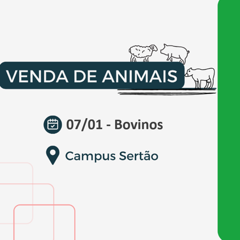 No dia 07 de janeiro de 2026, o Campus Sertão realizará uma chamada pública para a alienação de bovinos.