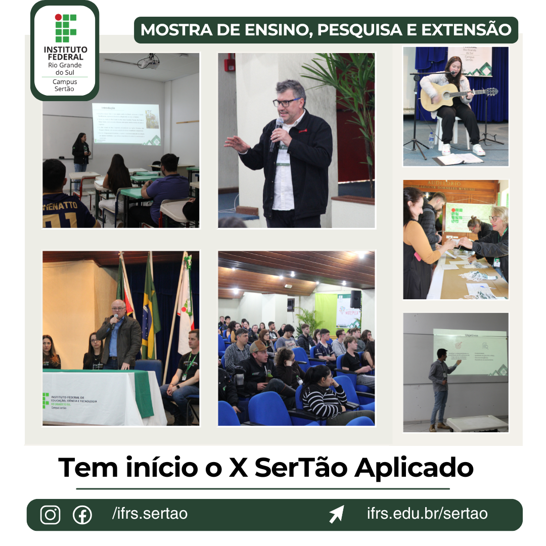 Com uma década de trajetória consolidada como espaço de divulgação científica, integração e valorização das práticas desenvolvidas no Campus Sertão, teve início na tarde desta segunda-feira, 20 de outubro, o X SerTão Aplicado. O evento Reúne a X Mostra de Ensino, a XV Mostra de Iniciação Científica, Tecnológica e de Inovação, a XIV Mostra de Extensão e a II Mostra de Trabalhos de Conclusão de Curso/Práticas Científicas Orientadas em nível de Graduação e Pós-graduação.