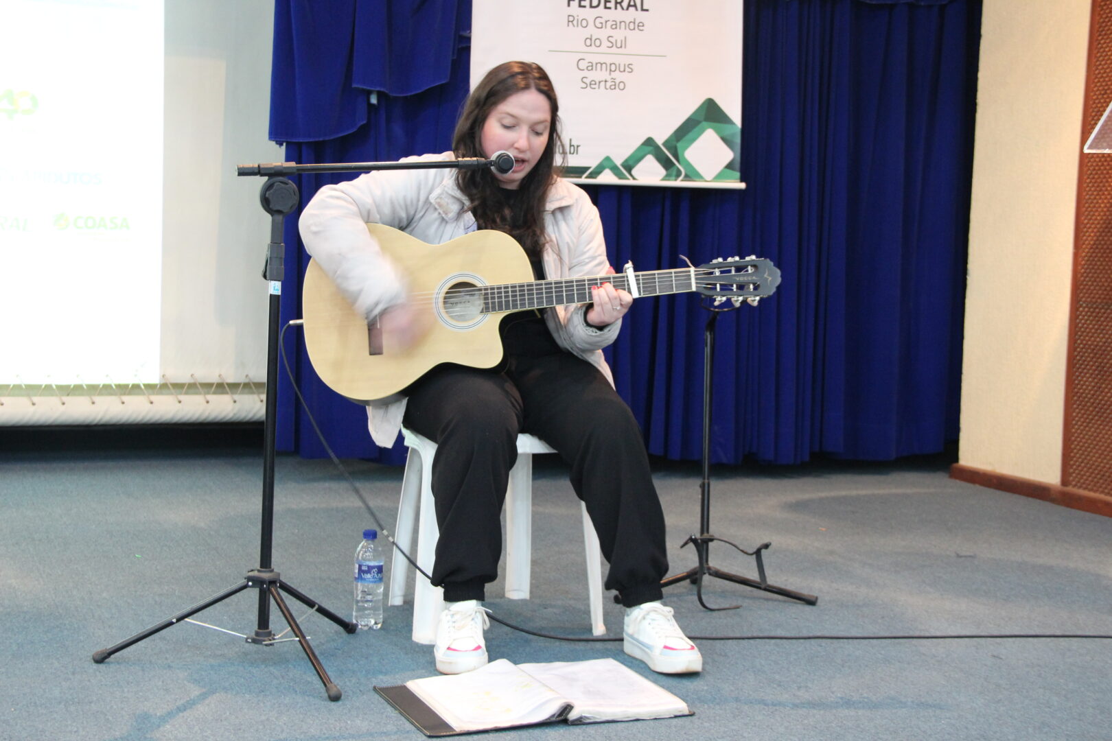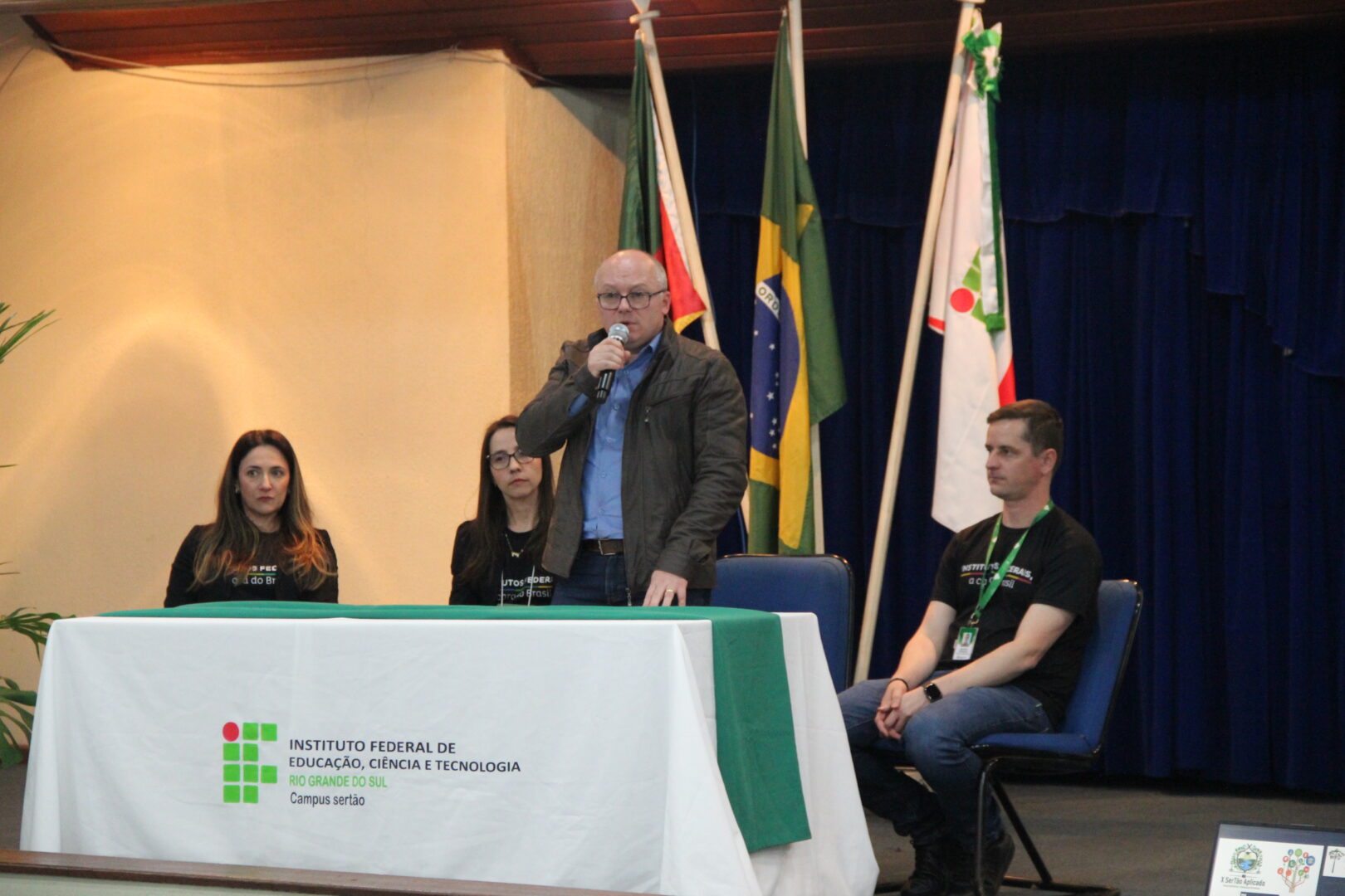 A cerimônia de abertura ocorreu no auditório central José Leocyr Dornelles Minussi e contou com a apresentação musical da estudante Sofia Pastorello, do curso Técnico em Manutenção e Suporte em Informática Integrado ao Ensino Médio. Compuseram a mesa de honra o diretor-geral do Campus Sertão, professor Clever Variani; a diretora de Ensino, professora Naiara Miotto Menino; a coordenadora do Departamento de Pesquisa, Pós-graduação e Inovação, professora Márcia Smaniotto; e o coordenador do Departamento de Extensão, Dagmar Pedro Tamanho. As falas destacaram a relevância do evento como espaço de socialização de conhecimentos produzidos no campus e de incentivo à formação científica, cidadã e crítica dos estudantes.
