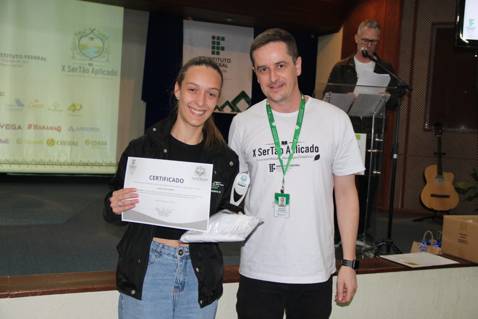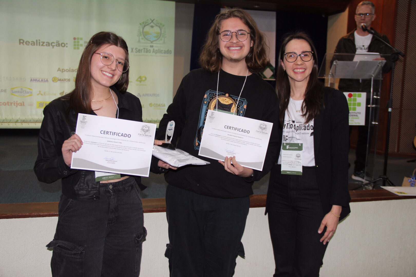 O encerramento foi marcado por agradecimentos à comunidade acadêmica e às equipes envolvidas na realização do X SerTão Aplicado. A organização destacou o trabalho colaborativo de servidores e estudantes, agradecendo especialmente ao colega Carlos Renê Ayres, responsável pela Oficina de Elaboração de Resumos, e aos avaliadores dos trabalhos. Também foram reconhecidas as contribuições do Projeto Sertão Maker e dos professores Gabriel Patzer e Hernani Cruz, responsáveis pela confecção dos troféus, além da professora Lilian Cláudia Xavier Cordeiro e do Núcleo de Arte e Cultura, que confeccionaram camisetas do evento.