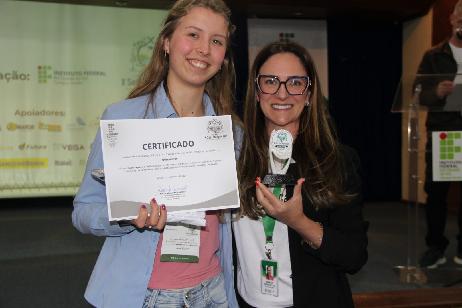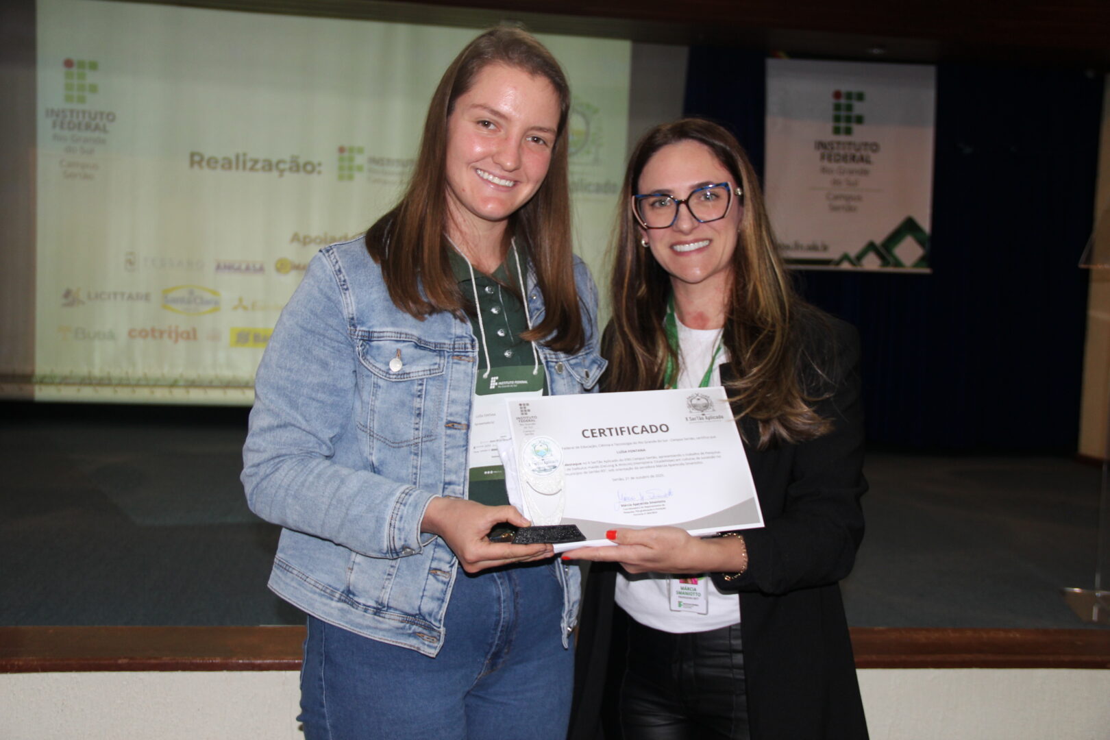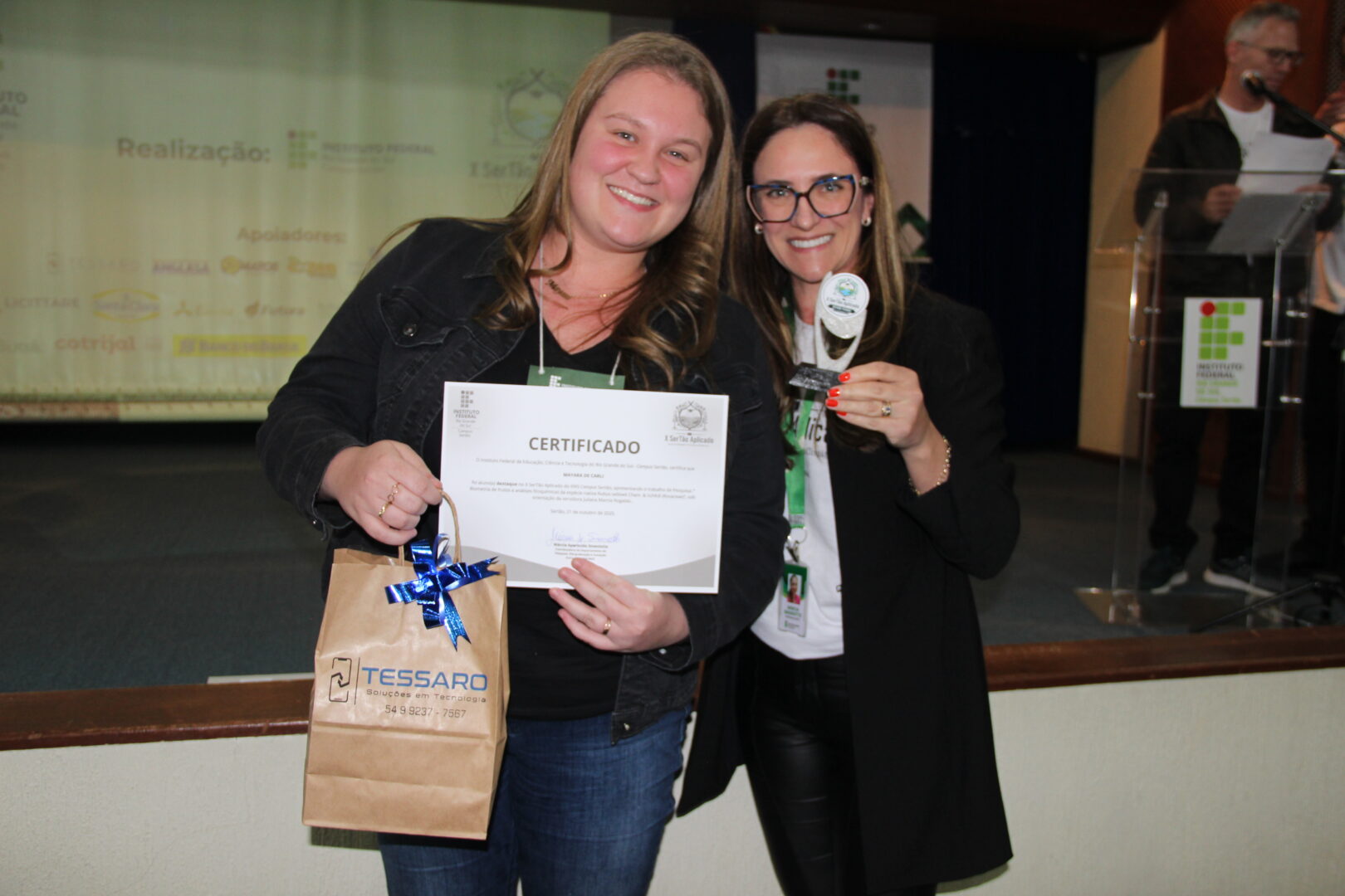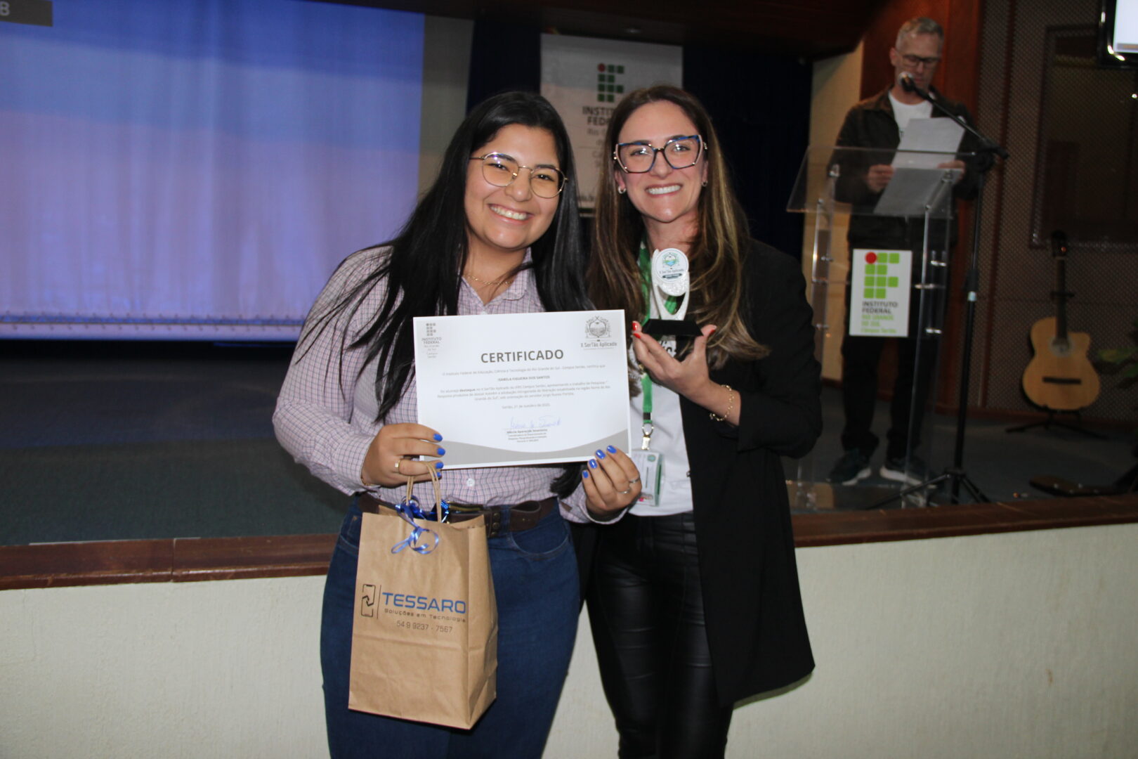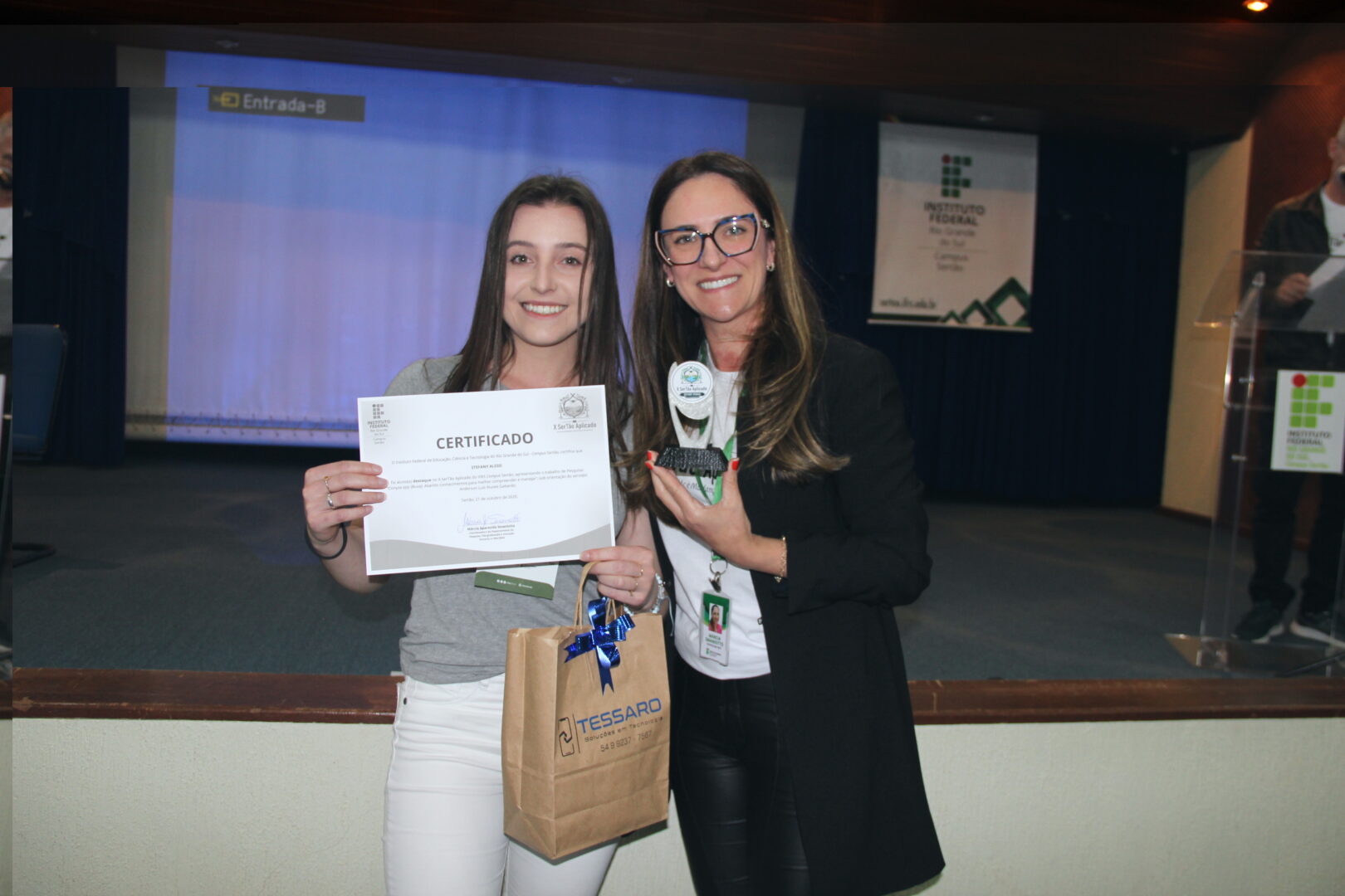 A coordenadora do Departamento de Pesquisa, Pós-Graduação e Inovação, Márcia Smaniotto, realizou a entrega da premiação aos destaques: