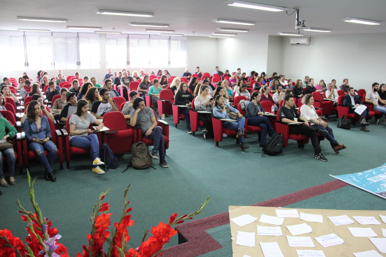 Fragilidades, potencialidades e ações concretas para auxiliar os estudantes do Instituto Federal do Rio Grande do Sul (IFRS) a concluírem seus cursos com êxito foram discutidas coletivamente nesta sexta-feira, 28 de setembro de 2018. As questões serão compiladas em um relatório, o qual norteará as pautas de reuniões de equipes de ensino, assistência estudantil e de demais setores da instituição e servirão como subsídios para a construção de novas políticas institucionais e aperfeiçoamento das políticas vigentes. Esse é um dos resultados do I Seminário de Permanência e Êxito do IFRS. O evento reuniu, no Campus Bento Gonçalves, aproximadamente 160 participantes dos diferentes campi, sendo 30% estudantes, e foi promovido pela Pró-reitoria de Ensino (Proen).