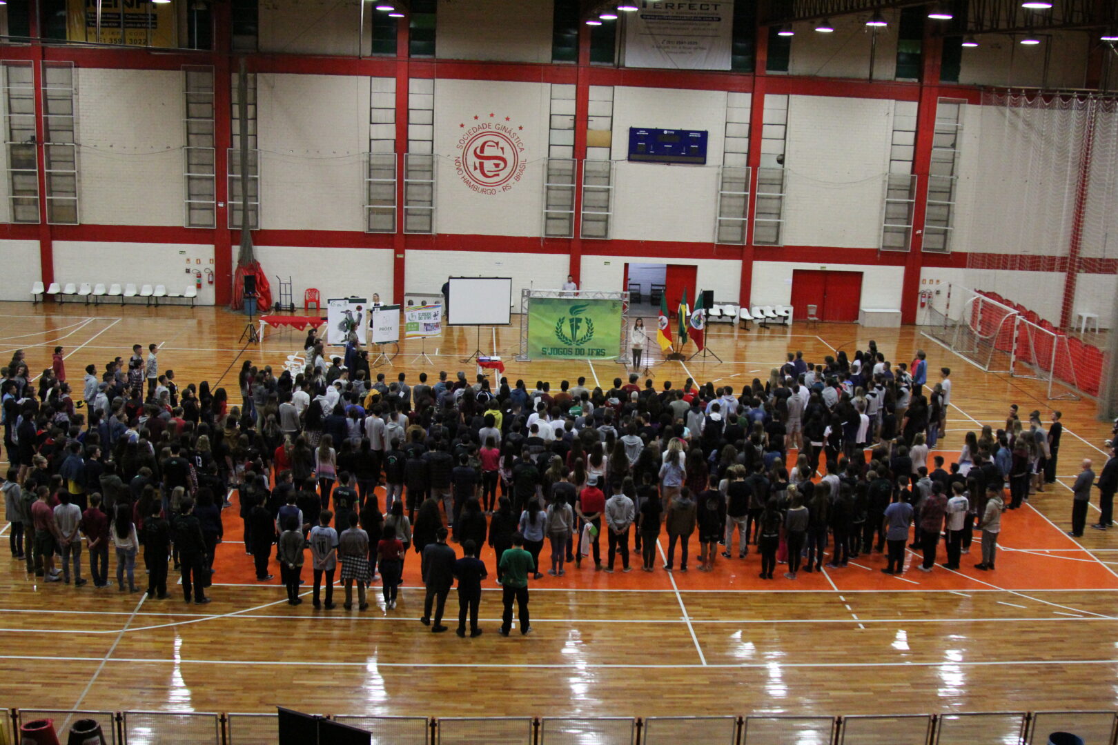 “Quando soube que viríamos para os jogos, fiquei muito animada”, comenta a estudante Júlia Damiani, entre um alongamento e outro. Com a expectativa brilhando nos olhos para entrar na quadra, o sentimento dela reflete o clima de entusiasmo neste primeiro dia de 5º Jogos do IFRS (JIFRS). São 480 estudantes de 14 campi que participam em oito modalidades, dessa quinta-feira, 17 de maio, até sábado, 19 de maio, na Sociedade Ginástica Novo Hamburgo.