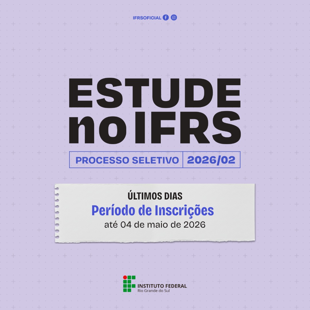 Está interessado em ingressar em um curso gratuito no Instituto Federal de Educação, Ciência e Tecnologia do Rio Grande do Sul (IFRS)? Não perca o prazo! Você tem até 04 de maio de 2026 para se inscrever no Processo Seletivo de estudantes 2026/2, com ingresso previsto para o segundo semestre.