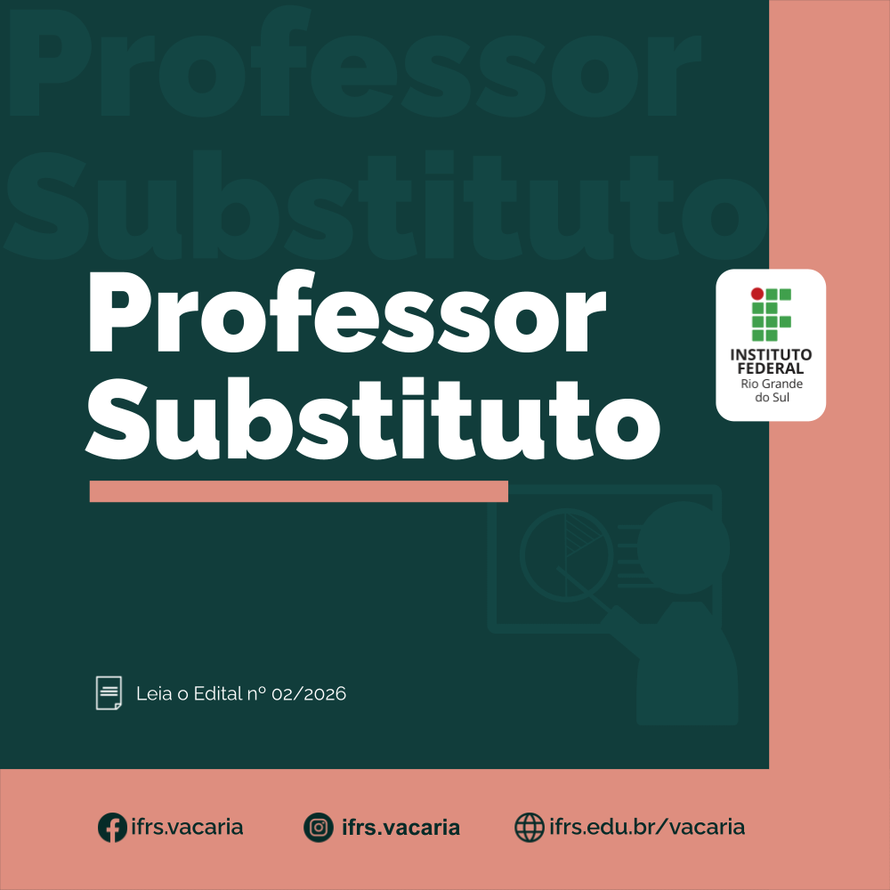 Foi publicado o Edital nº 02/2026, o qual trata da seleção de professor(a) substituto(a) no IFRS – Campus Vacaria.