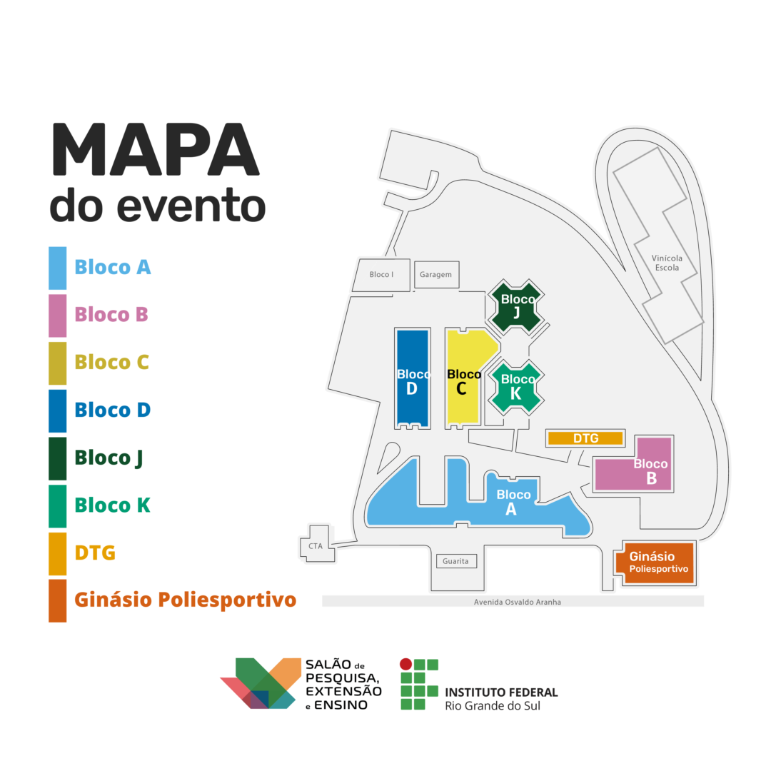 O Salão contemplará os seguintes eventos: 12º Seminário de Iniciação Científica e Tecnológica (SICT); 11º Seminário de Extensão (SEMEX); 10º Seminário de Educação Profissional e Tecnológica (SEMEPT); 8º Seminário de Pós-Graduação; 8º Seminário de Internacionalização; Sessão de Indissociabilidade; Mostra de Inovação e Tecnologias (MIT); Mostra de Protótipos Automotivos; Mostra de Arte; 3º Feira de Sabores e Saberes; 2º Encontro de Educação a Distância; 3º Circuito Literário; 2º Mérito Extensionista; 2º Exposição NuMem: 15 anos de História e Memória do IFRS; Encontro de Periódicos. O evento terá, mais uma vez, o Espaço Kids, local lúdico e de acolhimento para todos os participantes.