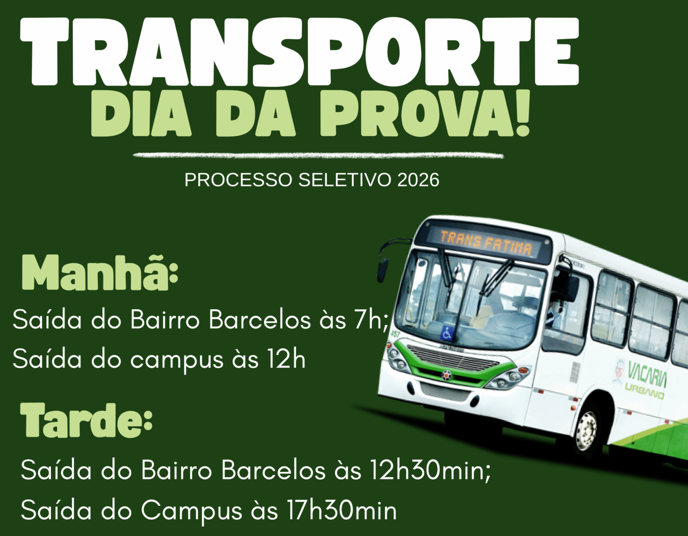 A Transfátima disponibilizará transporte especial aos candidatos, seguindo o itinerário habitual dos dias de aula: