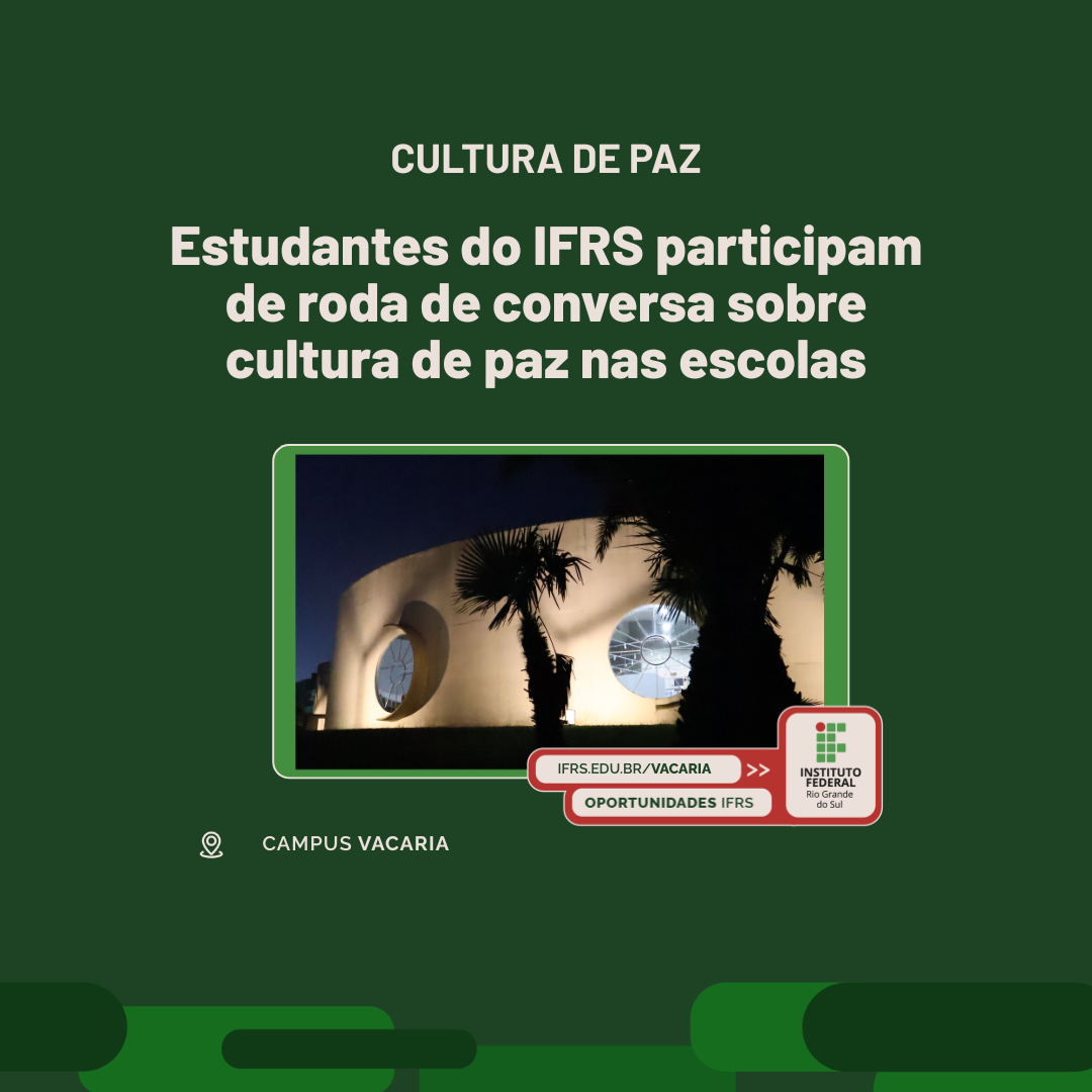 No dia 24 de março, estudantes das Licenciaturas em Pedagogia e Ciências Biológicas do Instituto Federal do Rio Grande do Sul (IFRS) – Campus Vacaria participaram do evento “Janelas abertas para o diálogo, portas fechadas para a violência: uma roda de conversa interinstitucional sobre prevenção da violência nos ambientes educacionais”, realizado na Casa do Povo.