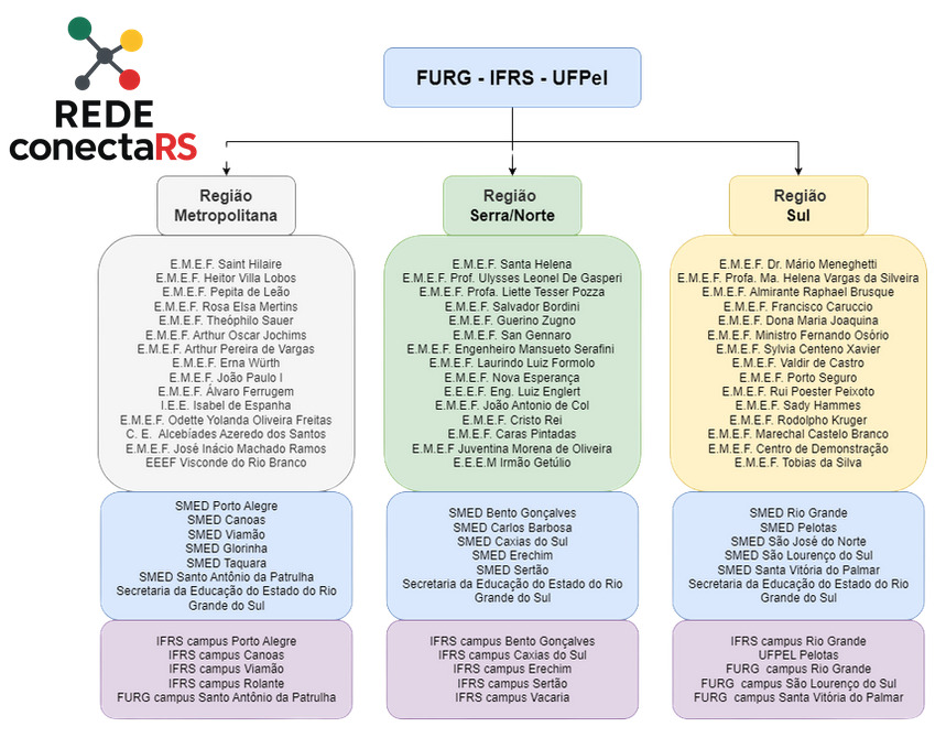 Para apoiar as ações, será estruturada a Rede ConectaRS / Conecta MakeRS, formada pelas três ICTs, pelas escolas participantes e por instituições parceiras. Atualmente, 84 pesquisadores integram a iniciativa, além da previsão de contratação de 18 bolsistas de Iniciação Científica.