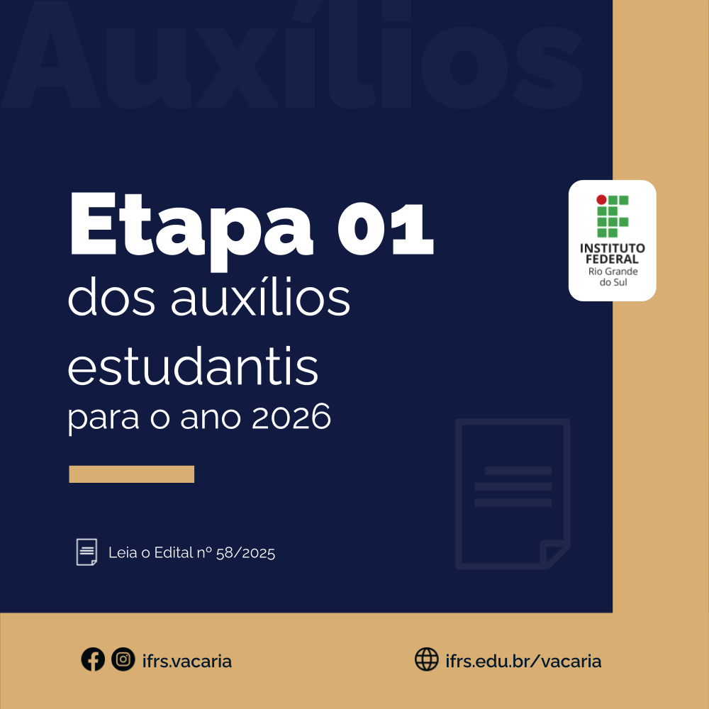 O edital nº 58/2025 encontra-se nas abas “editais” do Campus Vacaria e da assistência estudantil.