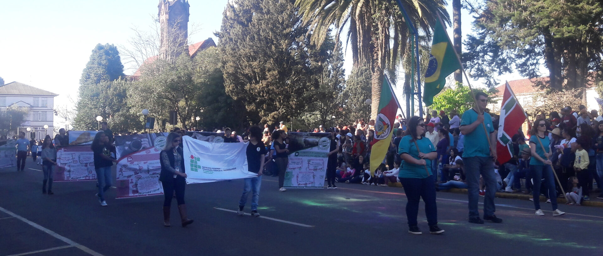 Cerca de 40 representantes do IFRS – Campus Vacaria participaram do Desfile de Sete de Setembro na cidade. Durante o evento, assistido por aproximadamente cinco mil pessoas, o público pode conferir professores, estudantes e familiares demonstrarem patriotismo e orgulho de fazer parte da instituição.