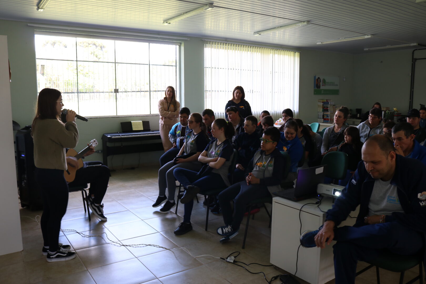 Ao todo, 42 participantes da Apae, entre estudantes, professores e monitores, estiveram presentes. A programação incluiu uma contação de histórias, conduzida pelos alunos do IFRS, um lanche coletivo e uma apresentação do grupo IF-Música Clube que animou o momento de confraternização.