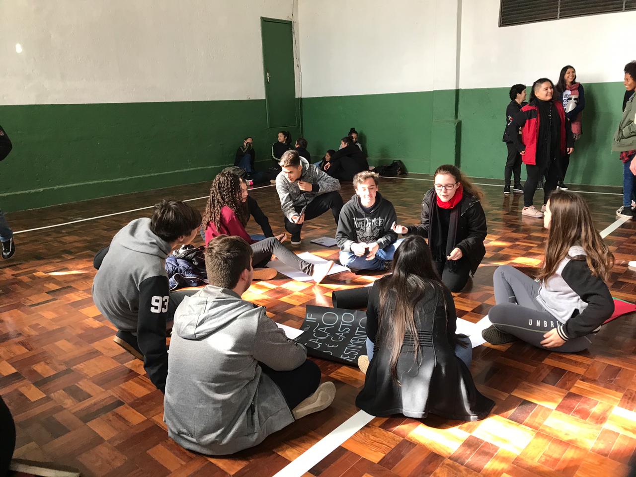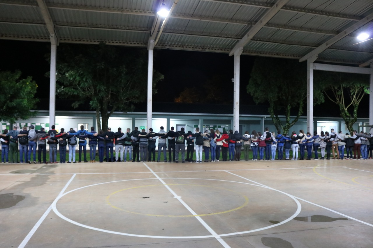 Em defesa dos Institutos Federais (IFs), a comunidade acadêmica do Instituto Federal do Rio Grande do Sul (IFRS) realizou abraços coletivos simbólicos na Reitoria e nos campi nesta segunda-feira, 13 de maio de 2019. O objetivo é chamar a atenção para os impactos negativos que o corte orçamentário anunciado pelo Ministério da Educação (MEC) terá no funcionamento da instituição. Estudantes e servidores participam das iniciativas. No Campus Veranópolis foram dois momentos um com os estudantes da tarde e o outro com os estudantes da noite.