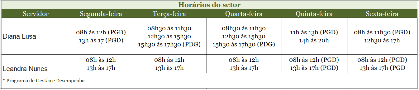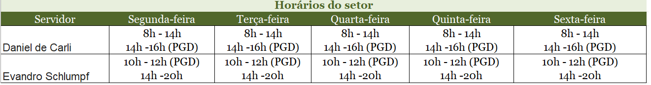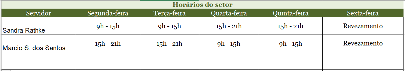 Contatos do Setor de Ensino: