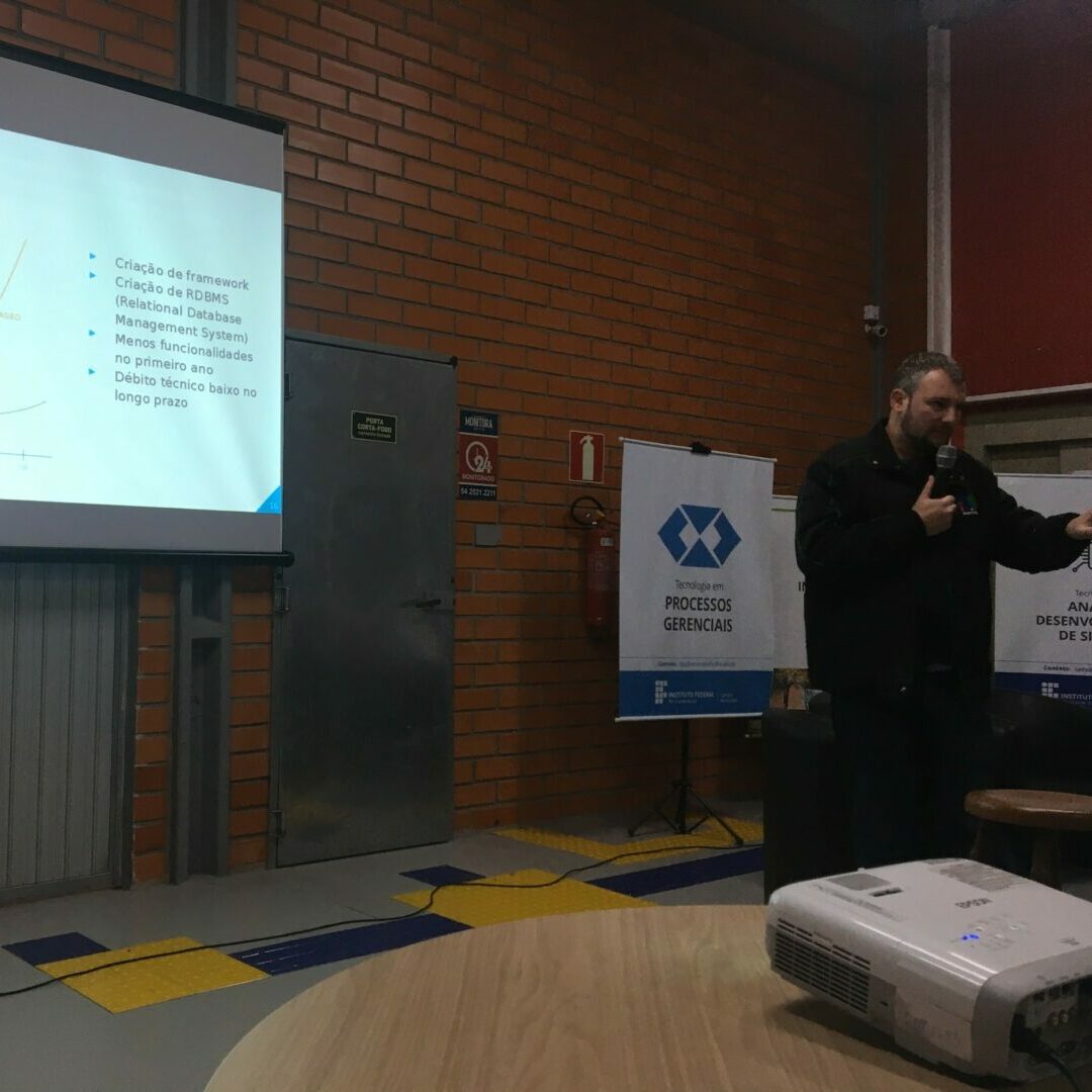 Na segunda noite, dia 19, aconteceram duas palestras. A primeira foi conduzida por Elton Dall Agnol, representando a empresa Sistema Completo de Gestão Empresarial (a00s), de Nova Prata. Ele, abordou o tema “Tecnologia nas práticas de gestão” e apresentou diversos softwares importantes para a gestão de negócios. Além disso, destacou a necessidade do trabalho integrado entre as áreas de tecnologia da Informação e Gestão e Negócios para o bom andamento de qualquer empresa.