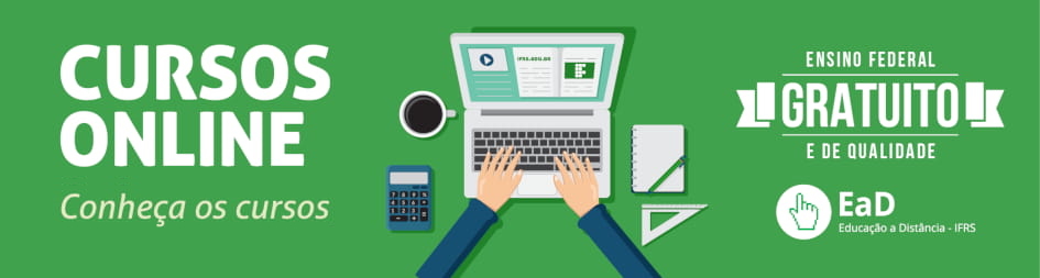 O IFRS disponibiliza permanentemente mais de uma centena de cursos de formação inicial e continuada na modalidade a distância, totalmente gratuitos e com emissão de certificados. Clique abaixo para ver a lista completa de cursos online abertos e gratuitos disponíveis no IFRS: